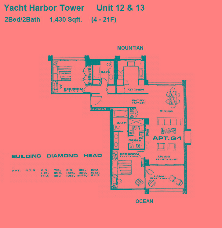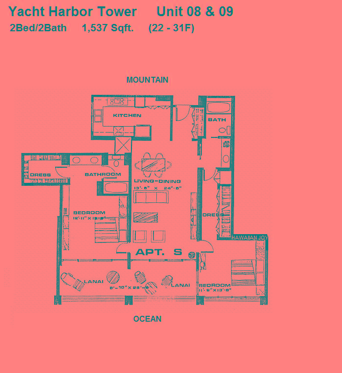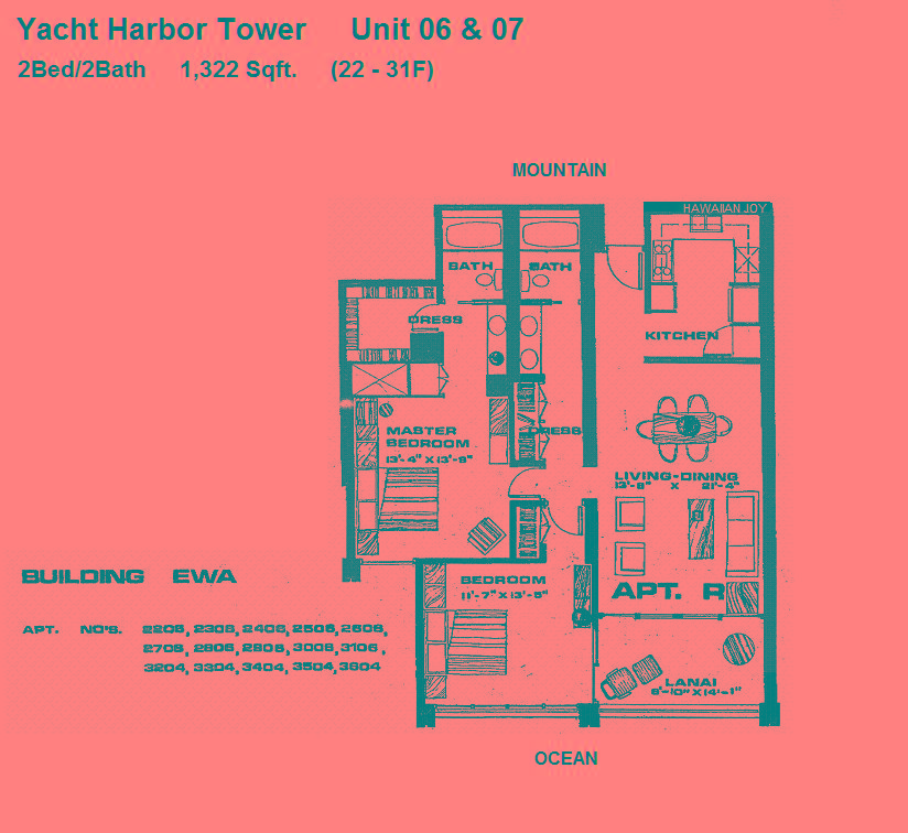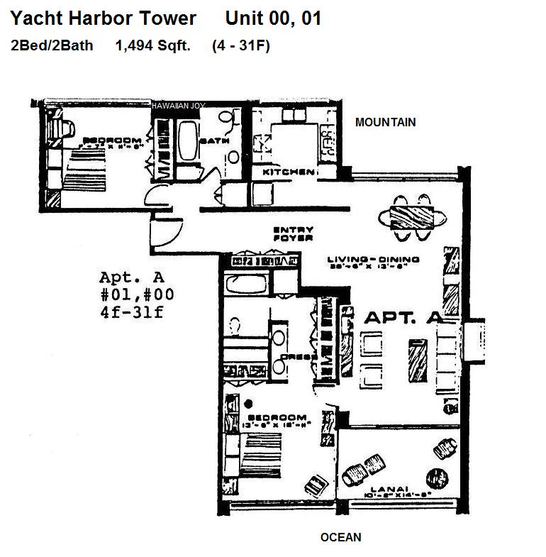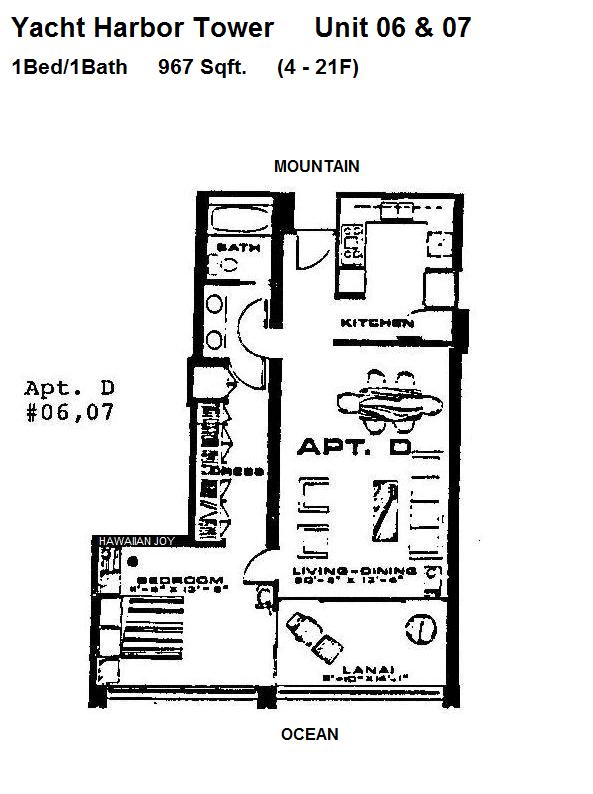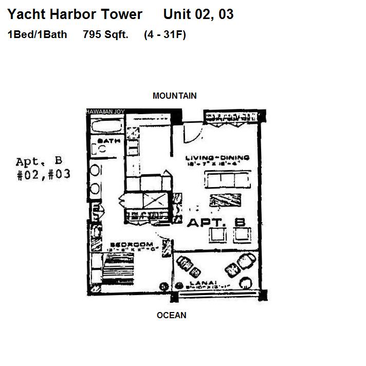 | Comment | Yacht Habor Towers, which is located along Ala Moana Blvd., has no other buildings in front, making way of unobstructive views of Ilikai Marina and Ala Moana Beach Park. Residents enjoy expansive ocean and sunset views, and fireworks during Independence Day. Conveniently located next to Honolulu’s most vibrant shopping center, short distance to Waikiki and the exciting new town of Ward Village in the Kakaako district. Yacht Harbor Towers consists of two towers, Ewa Tower and Diamond Head Tower, and each room is much larger than the average condominium in Waikiki. Maintenance Fee includes basic cable, electric, gas, hot and cold water. | ||