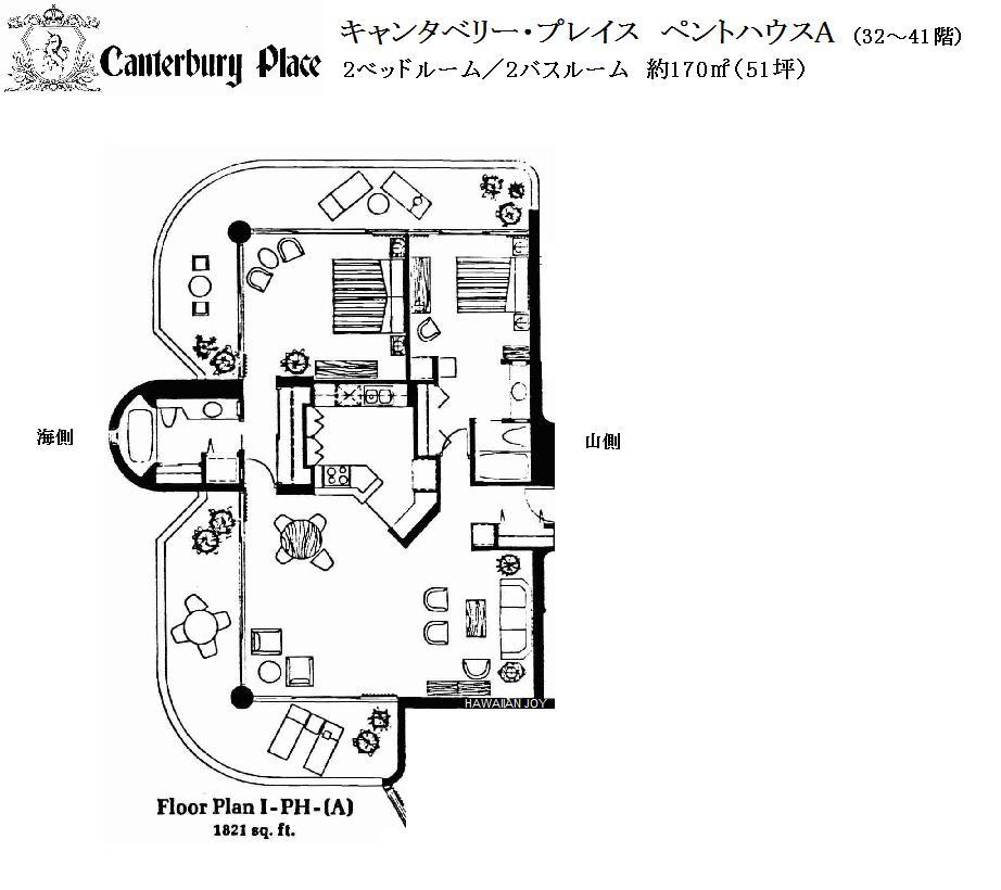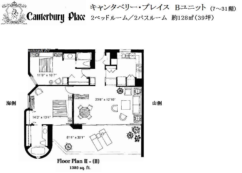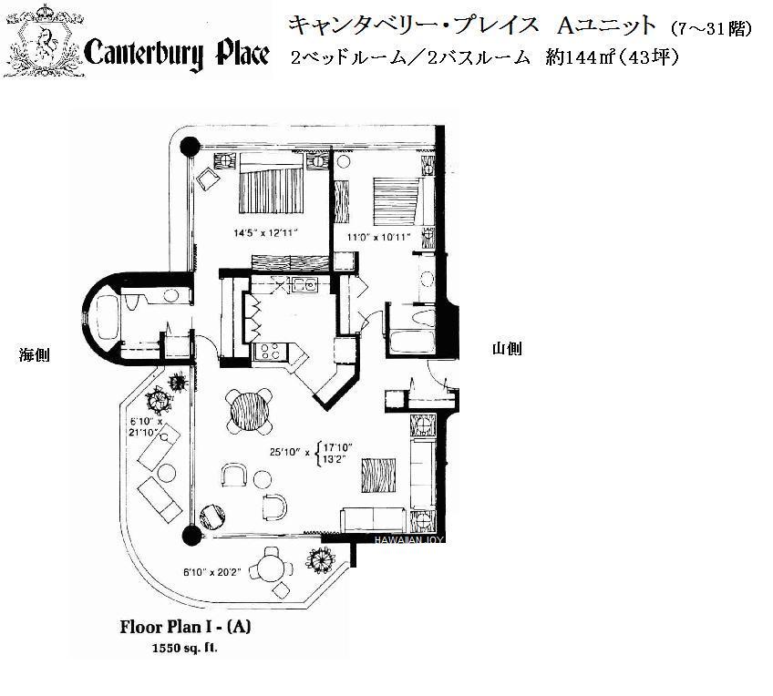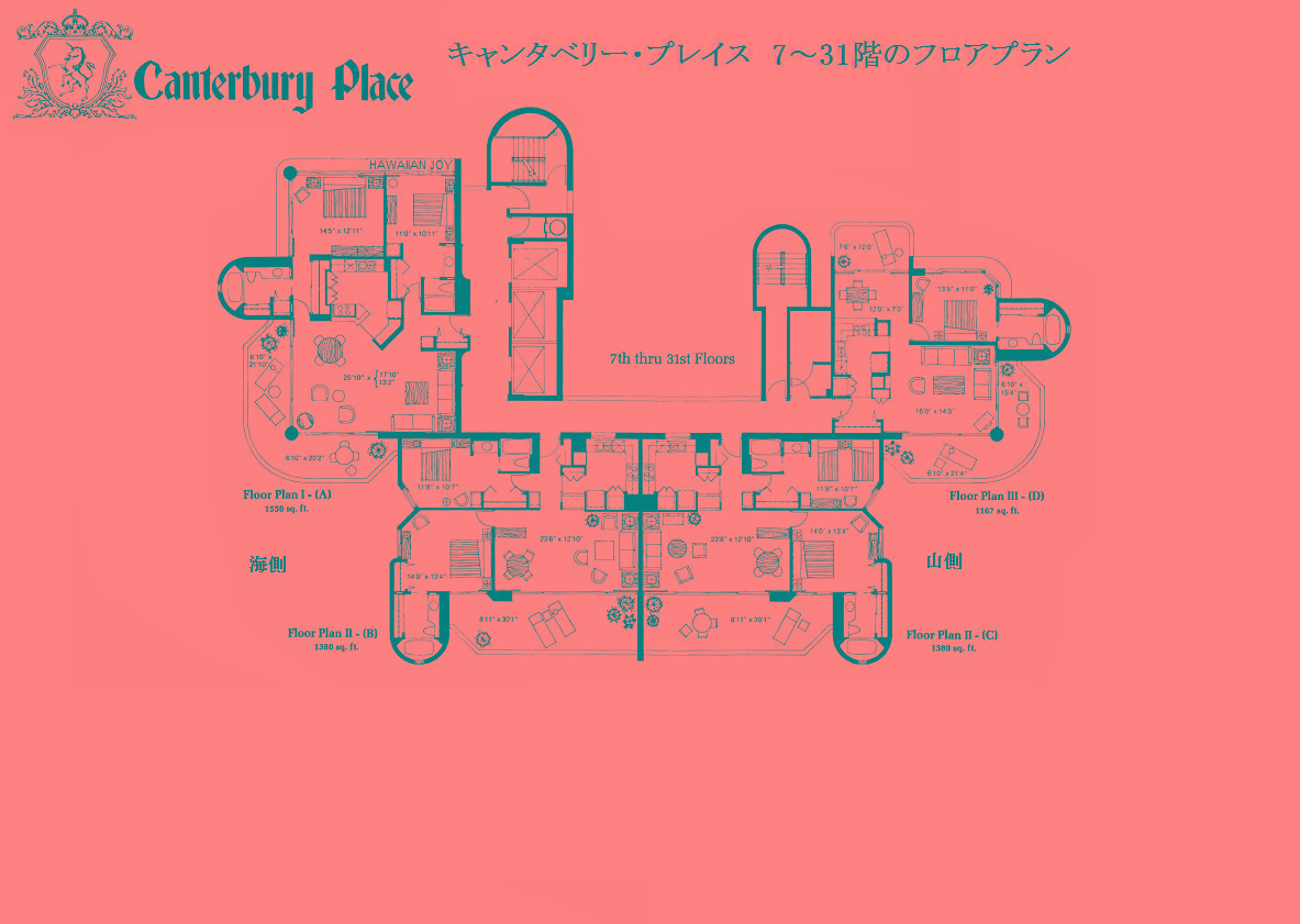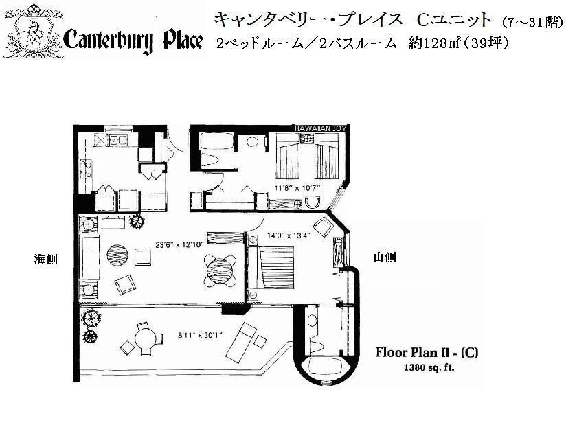 추가 설명 와이키키의 서편의 힐튼 하와이안 빌리지 인근에 위치한 「칸터베리 플레이스」는 “”요트 하버 타워”” 및 “다이아몬드 헤드 비스타”를 분양 개발한 브루스 스타크(Bruce Stark) 씨에 의해 건설되었습니다. 대부분의 유닛에서 미군 휴양지인 포트 드 루시 공원을 내려다볼 수 있으며, 고층 유닛에서는 다이아몬드 헤드와 바다 전망도 즐기실 수 있습니다. 베란다도 넓으며, 각 층에 4~5세대만 배치되어 있어 프라이버시가 뛰어난 매물입니다. 보안은 오토락 시스템으로 되어 있으며, 로비에는 상주 경비원이 배치되어 있습니다.