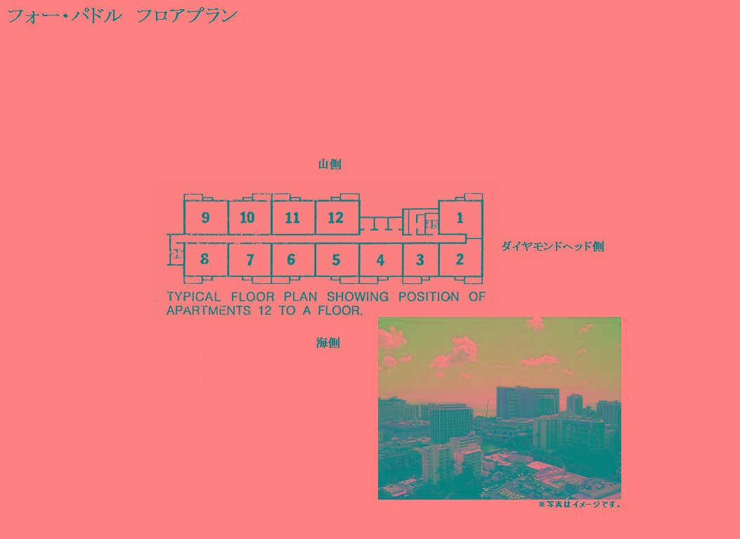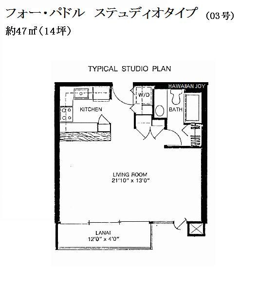 | 추가 설명 | 「포 패들(Four Paddle)」은 와이키키 중심부에 위치한 콘도미니엄으로, 스튜디오와 1베드룸 타입으로 구성되어 있습니다. 쿠히오 애비뉴(Kuhio Ave.)를 마주하고 있으며, 근처에 버스 정류장도 있어 교통이 편리한 입지 조건을 갖추고 있습니다. 이 콘도는 스튜디오 타입에도 세탁기와 건조기가 실내에 완비되어 있고, 1대의 주차 공간도 포함되어 있어 임대용으로도 인기가 높습니다. 호실 번호 끝자리가 02-08인 유닛은 2016년에 개장한 리츠칼튼 와이키키를 마주하고 있으며, 01호와 09-12호 유닛은 산 방향으로 향해 있습니다. 5층의 어메니티 데크에는 수영장, BBQ 공간, 사우나가 마련되어 있습니다. 관리비에는 케이블 TV, 중앙 냉방(Central A/C), 전기요금, 온수 및 수도요금이 포함되어 있습니다. 출입구는 오토락 시스템으로 되어 있으며, 경비원이 상주하여 보안도 뛰어납니다. 반려동물 허용. | ||