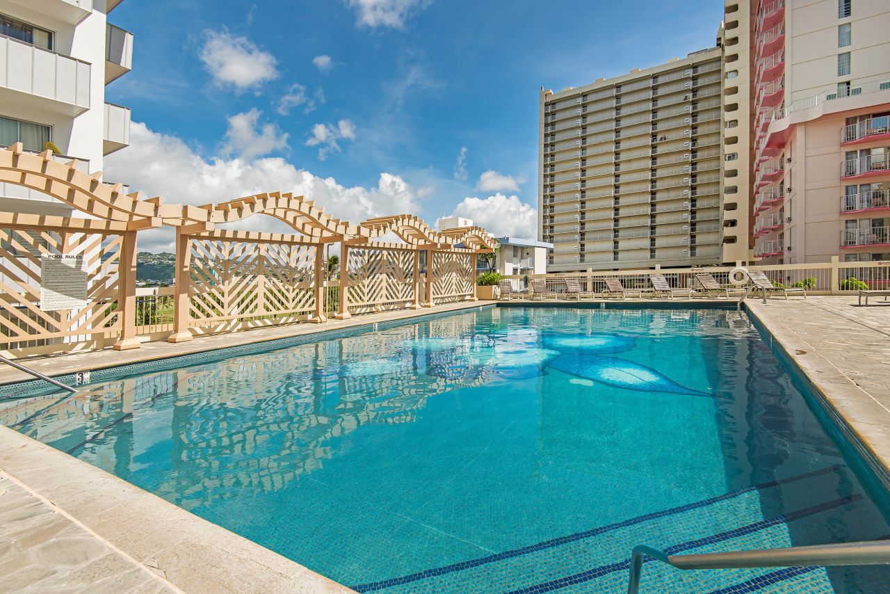 | 추가 설명 | 「아이랜드 코로니」는 와이키키 중심에 위치하면서도 가격대가 30만~40만 달러로 비교적 합리적인 콘도미니엄입니다. 고층 유닛에서는 코올라우 산맥, 다이아몬드 헤드, 그리고 바다 전망까지 감상할 수 있으며, 스튜디오 타입의 유닛에도 넓은 베란다가 있어 쾌적한 생활이 가능합니다. 코너에 위치한 4개의 유닛은 1베드룸 타입이고, 그 외 대부분은 스튜디오 타입입니다. 6층에 위치한 수영장 데크는 넓고, 같은 층에 편의점도 있어 생활 편의성이 뛰어납니다. 주변에는 ‘인터내셔널 마켓플레이스’와 ‘로열 하와이안 쇼핑센터’가 가까워 쇼핑과 외식이 매우 편리합니다. 월 관리비에는 케이블 TV 요금, 수도 요금, 온수 요금이 포함되어 있습니다. |