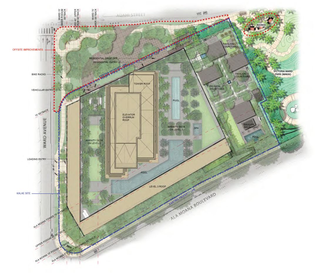 | 추가 설명 | 「카라이(Kalai)」는 하워드 휴즈사가 이끄는 워드 빌리지(Ward Village)의 10번째 레지던셜 타워로, 카카아코 지역 개발을 선도하고 있는 프로젝트입니다. 개발 신청서에 따르면 총 330세대의 주거 유닛과, 지상층에는 풀 키친이 갖춰진 카바나 3채, 5층에는 오너 전용 어메니티 데크가 조성될 예정입니다. 건물의 외관 디자인은 시카고에 본사를 둔 건축사무소 솔로몬 코드웰 벤즈(Solomon Cordwell Buenz)가 담당하며, 인테리어 디자인은 캘리포니아에 위치한 니콜 홀리스(Nicole Hollis) 사무소가 맡고 있습니다. “카라이(Kalai)”는 하와이어로 “가장 남쪽 지점”을 의미합니다. 새로운 정보가 입수되는 대로 수시로 업데이트해 드릴 예정입니다. | ||