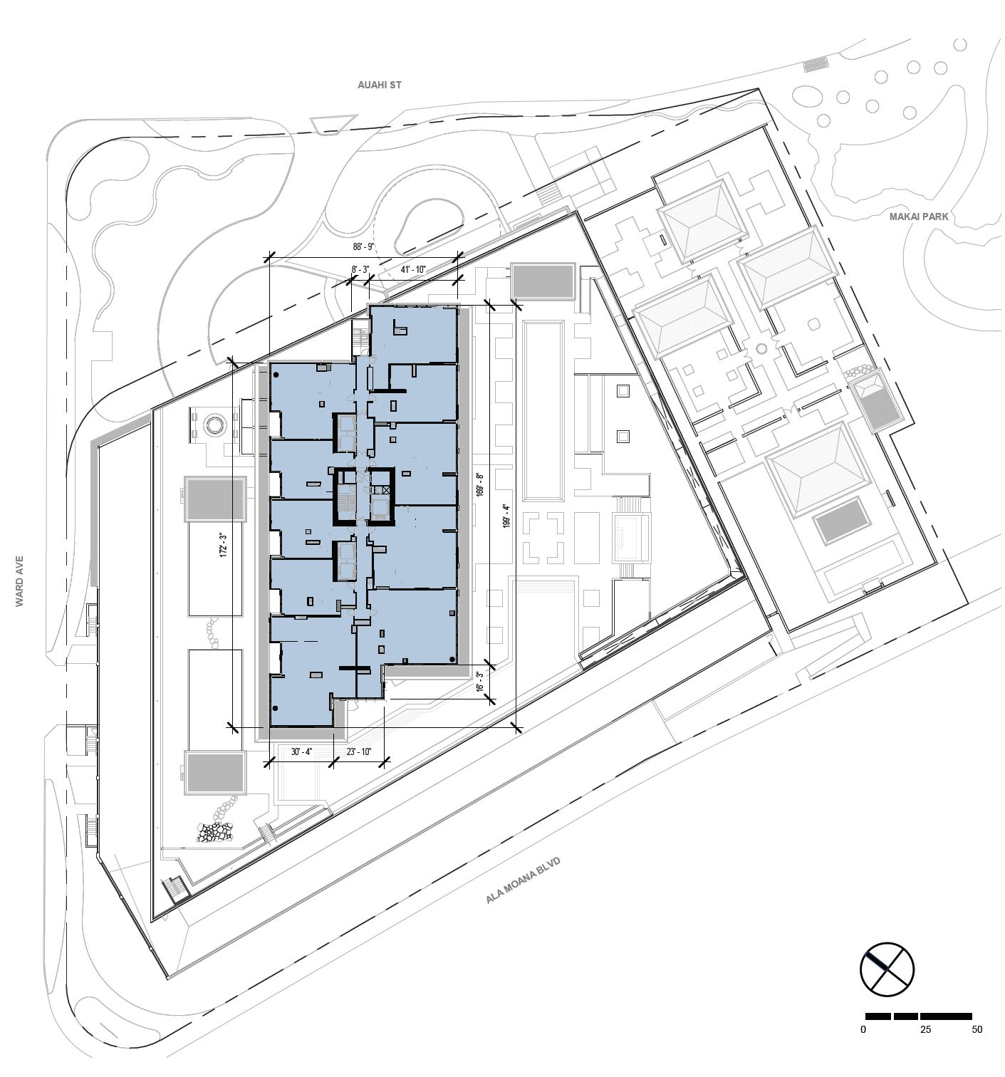 알라모아나 거리에 건설 예정이며, 분양 예정인 ‘더 라우니우(The Launiu)’ 바로 옆에 위치합니다.