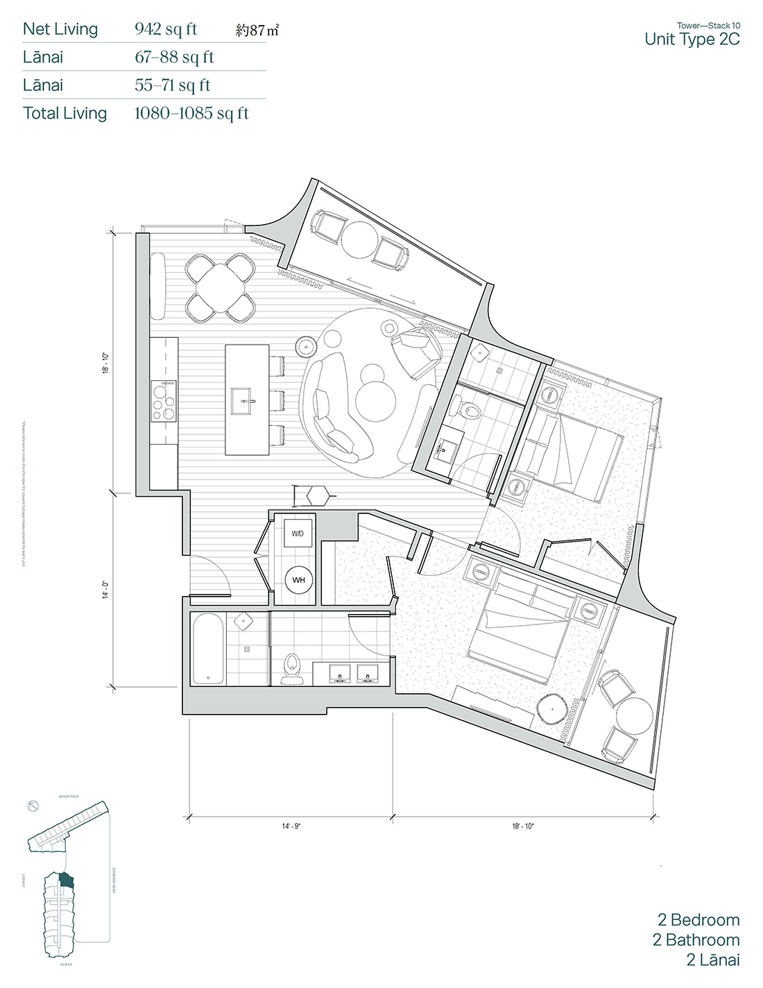| 추가 설명 | 「코우라(Kō'ula)」는 카카아코 지역 개발을 주도하고 있는 하워드 휴즈 사(Howard Hughes Corporation)가 개발한 여섯 번째 콘도미니엄입니다. 총 41층 규모의 타워 레지던스에는 565세대가 있으며, 1층은 전면 리테일(상업) 공간으로 구성되어 있고, 레지던스 로비는 2층부터 시작됩니다. 평면 구성은 스튜디오부터 1베드~3베드 타입까지 다양하며, 면적은 약 27㎡에서 139㎡입니다. 건물 옆에는 지역의 상징적인 공원인 '센트럴 플라자(Central Plaza)'가 조성되어 있고, ‘홀푸즈 마켓(Whole Foods Market)’도 도보권에 위치해 있어 생활 편의성이 뛰어납니다. 최근 오픈한 Onkee 온기 레스토랑도 영업중에 있습니다. ‘코우라(Kō‘ula)’는 하와이어로 ‘붉은 사탕수수(Red Sugarcane)’를 뜻하며, 하와이섬 힐로(Hilo)에 위치한 시그 제인 디자인(Sig Zane Designs)에서 이름을 명명하였습니다. 건물 외관 디자인은 시카고, 뉴욕, 샌프란시스코에 사무실을 둔 Studio Gang이, 인테리어는 뉴욕과 토론토에 오피스를 둔 국제적 디자인 회사인 Yabu Pushelberg가 맡아 설계했습니다. | ||