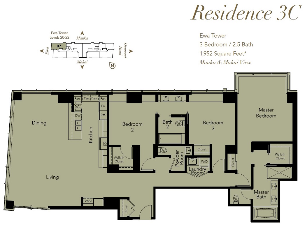 | 추가 설명 | 알라모아나 쇼핑센터에 인접해 있는 ‘원 알라모아나(One Ala Moana)’는 ‘호쿠아(Hokua)’, ‘파크 레인 알라모아나(Park Lane Ala Moana)’ 등 고품질 콘도미니엄 개발로 정평이 난 맥노튼 그룹(The MacNaughton Group)과 고바야시 그룹(Kobayashi Group)이 공동 개발한 고급 주거단지입니다. 공용 아메니티 입주민이 이용할 수 있는 공용 아메니티는 매우 잘 갖춰져 있으며, 수영장 데크가 있는 테라스 층에 올라서면, 쇼핑센터의 분주함을 잊게 만드는 리조트 같은 오아시스 분위기를 느낄 수 있습니다. 입지 및 서비스 와이키키, 다운타운, 카카아코 등 주요 지역 접근성이 뛰어난 입지, 어디를 가든 이동이 편리한 중심 생활권 위치 프런트 직원이 24시간 상주하며 입주민의 쾌적한 생활을 위해 세심하게 관리되고 있습니다. 관리비 포함 항목 (월 기준) 케이블 TV, 인터넷, 온수, 수도 요금 ※ 반려동물 동반 가능(펫 프렌들리) | ||