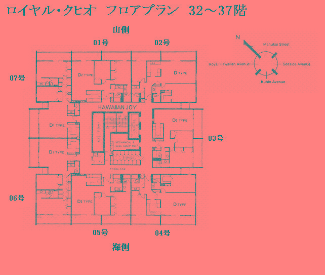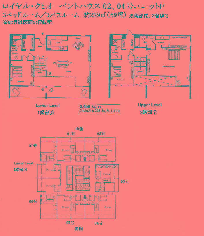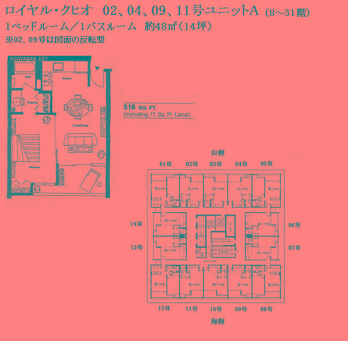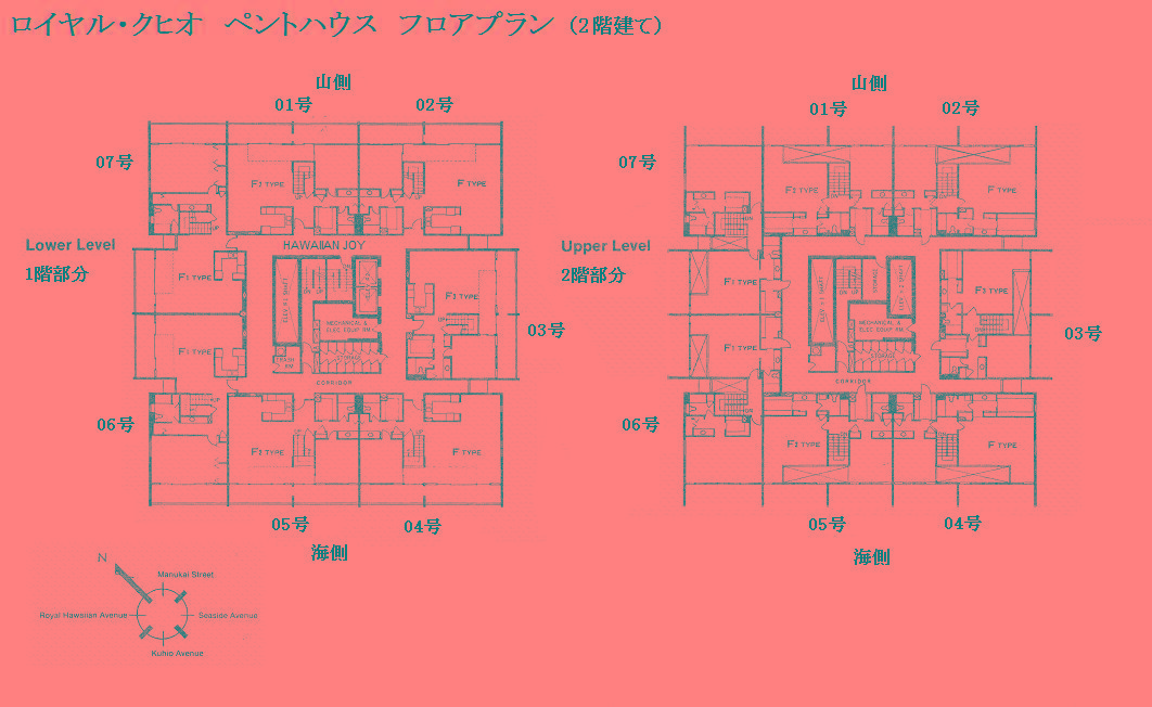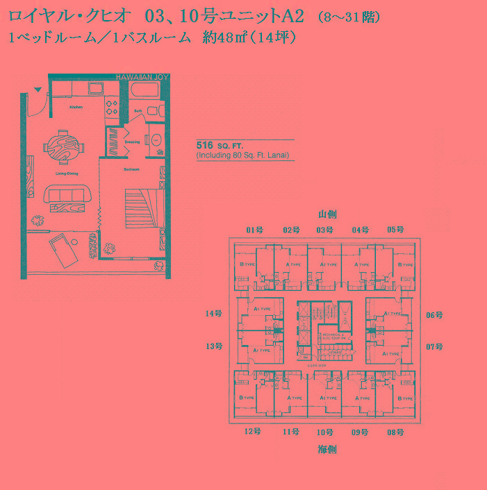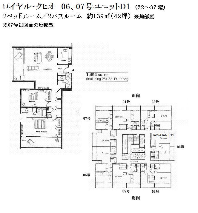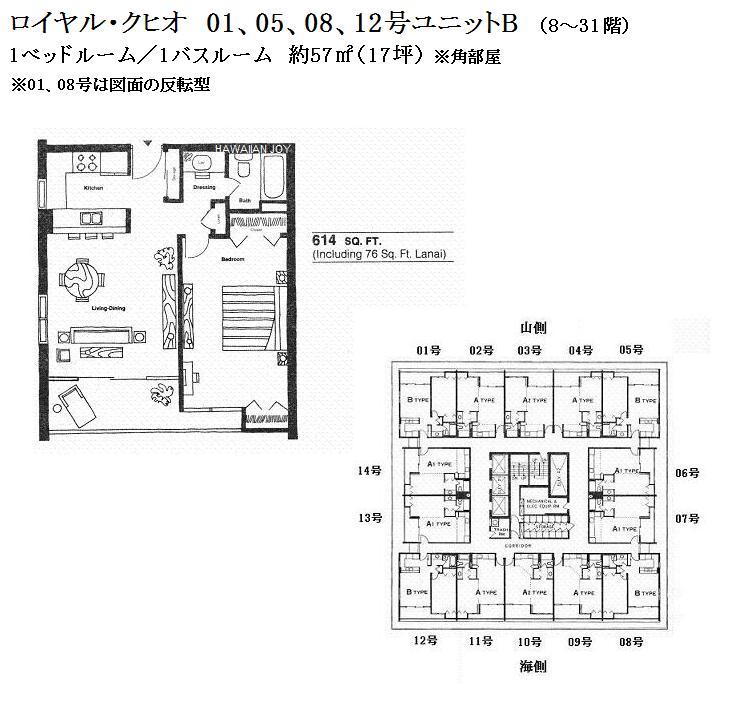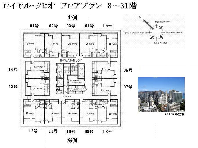 추가 설명 「로얄 쿠히오」는 와이키키 중심부에 위치한 콘도미니엄입니다. 평면 구성은 층수에 따라 다르며, 1베드룸은 8-31층, 2베드룸은 32-37층, 3베드룸은 38층의 펜트하우스(복층형)로 이루어져 있습니다. 2베드룸 및 3베드룸 유닛에 접근할 때는 1베드룸과는 다른 엘리베이터를 사용합니다. 또한, 2베드룸 및 3베드룸에는 세탁기와 건조기가 실내에 완비되어 있으나, 1베드룸 유닛에는 설치되어 있지 않아 7층에 있는 코인 세탁실을 이용해야 합니다. 주변에는 로얄 하와이안 쇼핑센터, 인터내셔널 마켓플레이스, 와이키키 비치가 있으며, 빌딩 바로 앞에 버스 정류장이 있어 차량 없이도 편리하게 생활할 수 있는 환경을 갖추고 있습니다. 월 관리비에는 케이블 TV 요금, 온수 요금, 수도 요금이 포함되어 있습니다. 반려동물 동반 가능.
