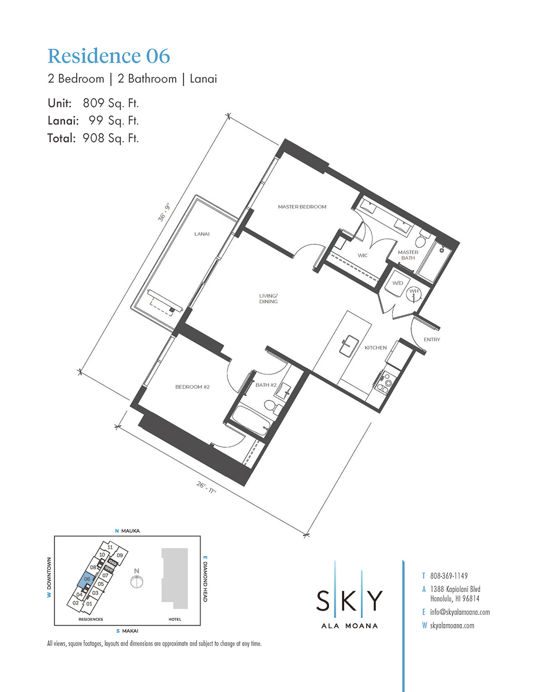 웨스트 타워는 일반 콘도미니엄(384세대), 이스트 타워는 호텔 콘도미니엄(383세대)로 이루어져 있습니다. 호텔 콘도 유닛은 메리어트(Marriott)가 운영하는 렌탈 프로그램에 참여할 수 있어 단기 임대 운영을 원하는 투자자에게도 적합한 선택지입니다. 본 단지는 재개발이 활발한 카카아코 지역과 와이키키 리조트 지역의 중간 지점에 위치해 있으며, 알라모아나 쇼핑센터가 바로 앞에 위치해 있어 건물 산쪽에는 월마트, 도보 거리에는 돈키호테, 푸드랜드(현지 식재료 마켓) 등이 있어 거주용으로도, 단기 체류용으로도 매우 실용적인 위치입니다.” |