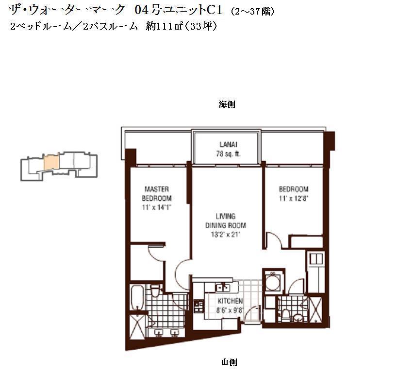 전용면적 1,081~2,198 Sqft. (약100~204㎡/30~61평)