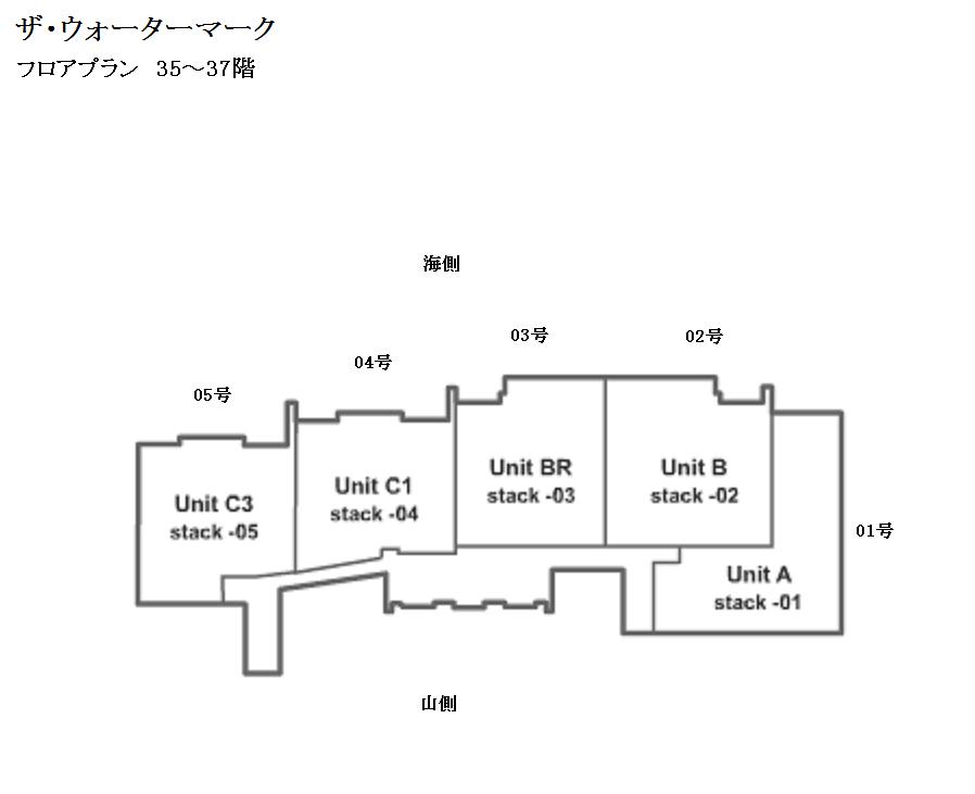 유닛 구성図 35-37층 플로어 플랜 2-34층 플로어 플랜 2-34층 05호 유닛 C2 2-34층 06호 유닛 D 2-37층 04호 유닛 C1 2-38층 01호 유닛 A 2-38층 02, 03호 유닛 B 35-37층 05호 유닛 C3