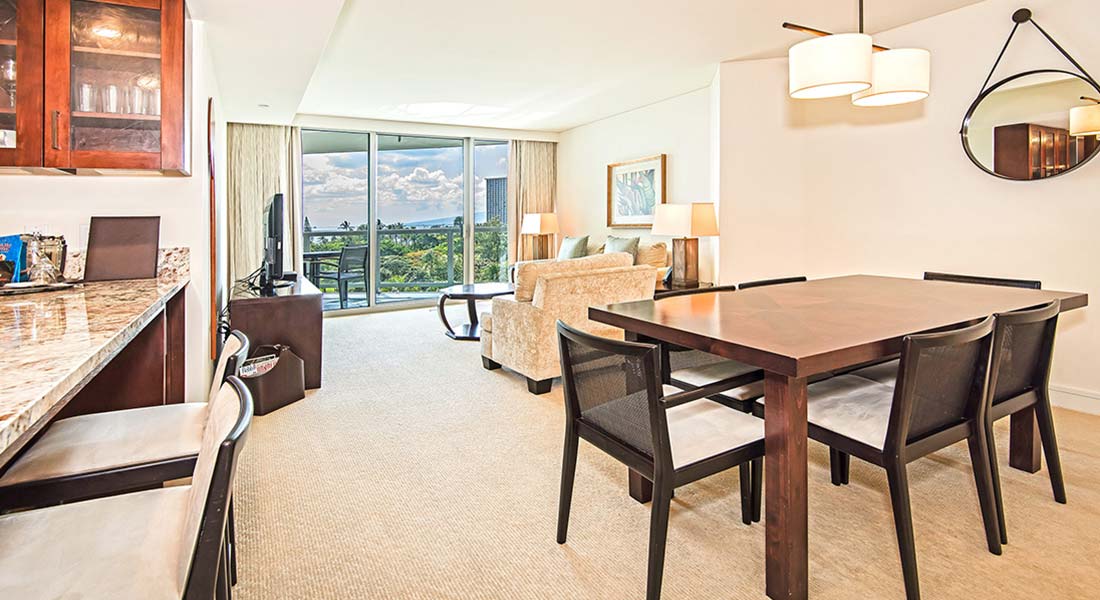 관내에는 “Wai’olu Ocean Cuisine”과 “In-Yo Café (조식 전용)”이 있으며, 도보 거리 내에도 다양한 고급 레스토랑들이 즐비해 있습니다. 1층 컨시어지에서 비치 세트를 대여한 후, 바로 와이키키 비치까지 걸어갈 수 있는 뛰어난 입지를 자랑합니다.