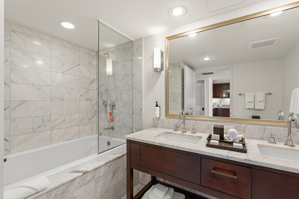 객실에서는 하와이 특유의 눈부신 햇빛이 반사된 스카이블루 바다 전망을 감상하실 수 있으며,컨시어지 서비스, 발레파킹, 피트니스 센터, 풀서비스 스파, 바 & 라운지, 수영장, 온수 욕조 등 일류 리조트급 시설을 체류 내내 자유롭게 이용하실 수 있습니다.
