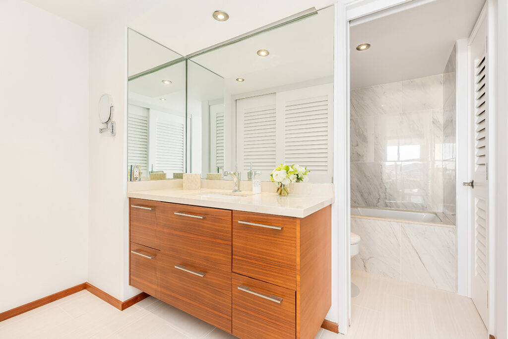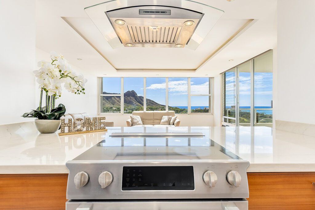 ワイキキの喧騒から少し離れ、心安らぐ景色をゆったりとご堪能いただけます。1フロアにわずか5ユニット、雁行型の設計により、プライベートな空間がしっかりと確保されています。他のどの建物からも望むことのできない、唯一無二の眺望があるダイヤモンドヘッドビスタの2ベッド/2バス/2パーキングのご紹介です。お部屋に足を踏み入れた瞬間、ダイヤモンドヘッドと深い青の海が織りなす壮麗なパノラマが目の前に広がり、まるで生きた絵画の中に迷い込んだような感動が胸を満たします。