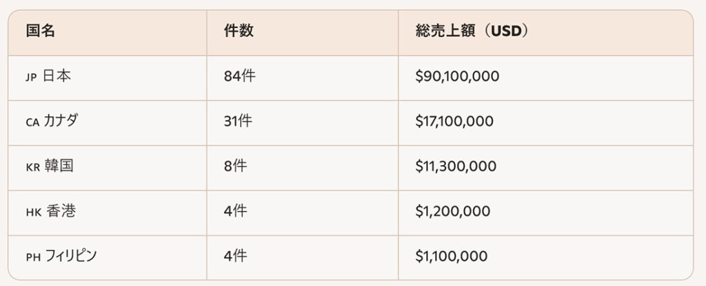オアフ島における外国人購入者の国別トップ5は、以下の通りです: